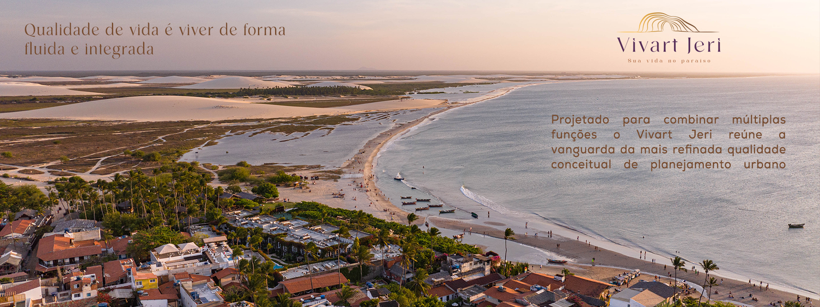 O inédito projeto urbano do Vivart Jeri se define como um micro bairro de uso misto na forma de condomínio de lotes, que combina setores comerciais internos e externos, áreas comuns de trabalho, convívio, lazer e relaxamento descentralizadas, perímetros residenciais segmentados com controle de acesso local para áreas exclusivas.